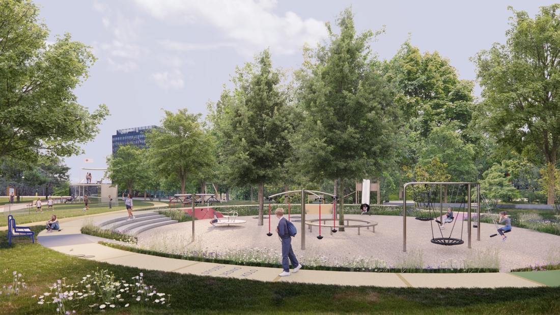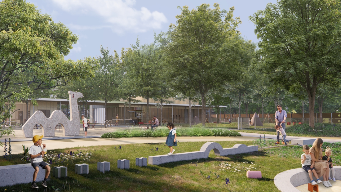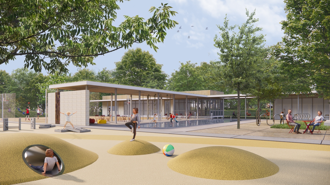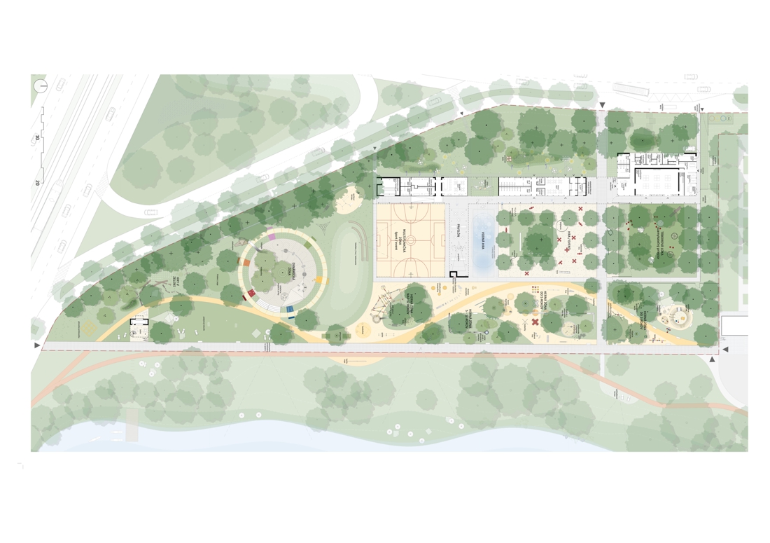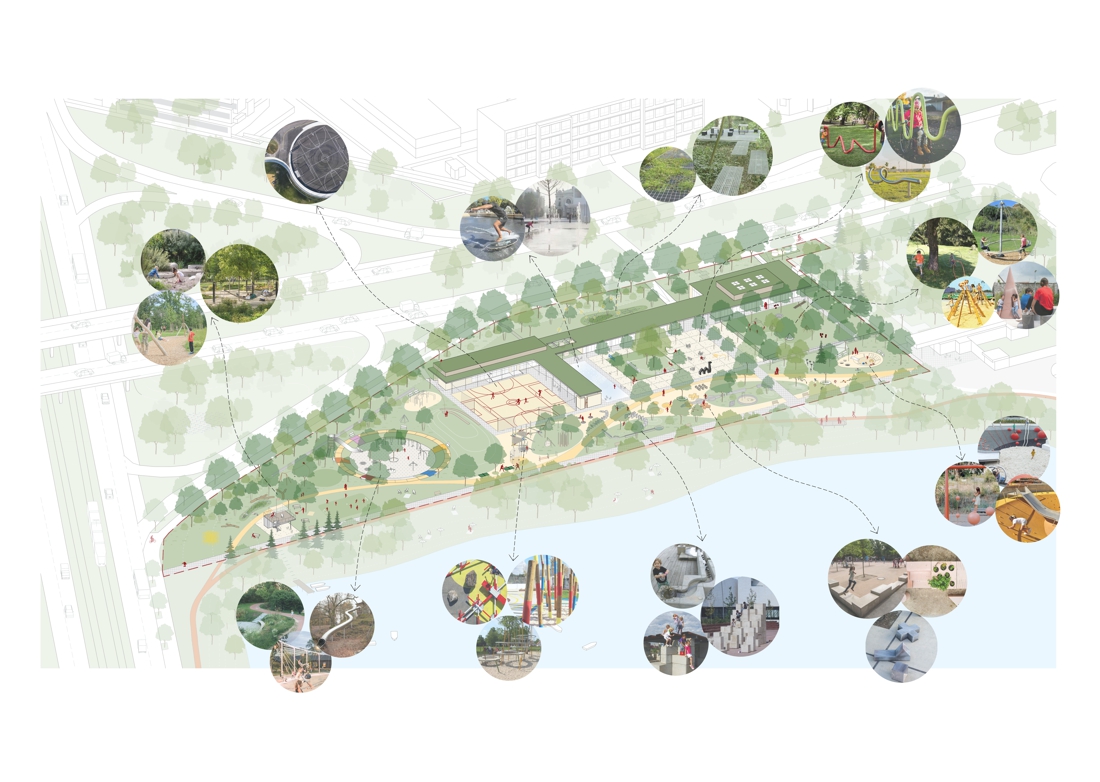 Prezentovaný návrh pracuje s pamäťou miesta a nadväzuje na koncepciu ihriska, založenú v 70. rokoch – dvojica pôvodných pavilónov zostáva zachovaná alebo pretransformovaná, výsledná urbánna figúra je podmienená a vychádza z jestvujúcich objektov. Umelecké diela, vrátane ikonickej betónovej ťavy, sú reštaurované do pôvodnej podoby. Priestorové usporiadanie areálu hier je upravené tak, aby spĺňalo nadštandard súčasných herných ihrísk, zároveň však v sebe nesie dôverne známe prvky predošlého riešenia, ktoré sú dnes súčasťou kultúrnej identity širšieho kontextu miesta.