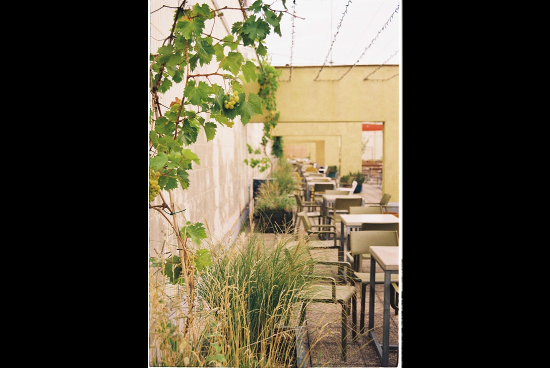 Na terasu sú navrhované odolné druhy stromov v mnohokmennej forme ( javor poľný-Acer campestre a breza previsnutá- Betula pendula ) , sadené do veľkoobjemných nádob s podsadbou tráv a cibuľovín. V bočných klenbách sú naťahané oceľové lanká na ktorých sú svetelné reťaze. Slúžia i na vedenie popinavych rastlín ( visteria a vinič ). V okrajových parteroch terasy sú drevené výsadbové nádoby so sortimentom rôznych byliniek, využívaných na bare a gastrosekcii.